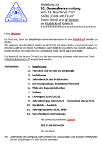 33 Skiclübler folgten der Einladung an die GV im Rigiblickhof. Wir hatten einen wunderbaren Abend im Kreise der Skiclubfamilie. Yvonne und Vic bewirtete uns, wie gewohnt ausgezeichnet. Besten Dank